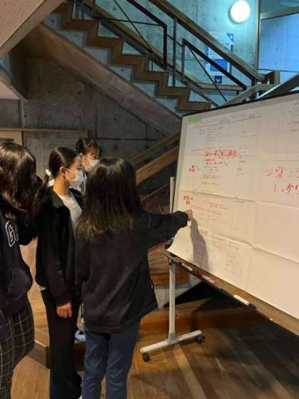 ミーティングルームにある掲示板で先生からの連絡を見て、グループに伝えています。しおりをしっかり読み込み活動の見通しを立てています。