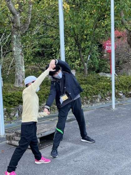 ペアでストレッチもして心も体もスッキリですね。