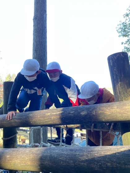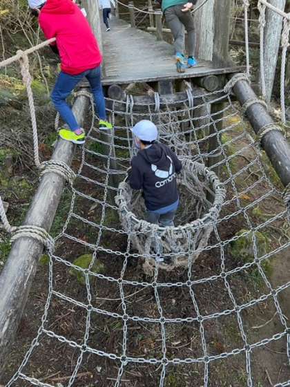 冒険の森は山の家にあるアスレチックです。自分の力に合わせてチャレンジできます。