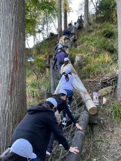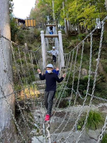 ロープや丸太を上手くいかして目的地を目指します。