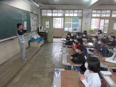 クイズはとても盛り上がり,感想の発表は静かに聞く5年生でした。