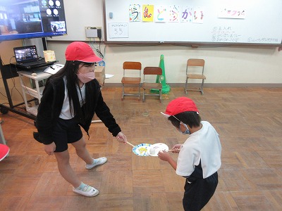 他校の育成学級の文字を集めて「みんなでなかよく たのしめました」の言葉を作ることができました。