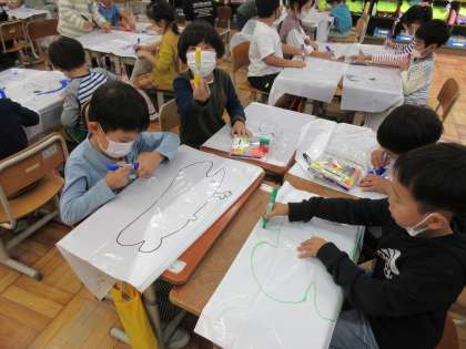 くじら隊は,自分で絵を描いたマントを羽織ります。