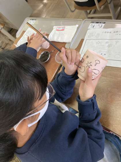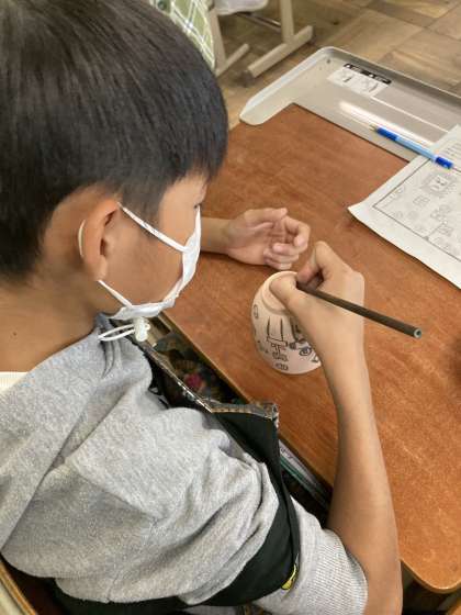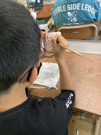 筆で描いた線が、焼き上がり後に青色の線として描かれると知り、より集中して取り組みました。