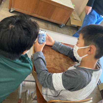 同じ筆で書いたと思えないほど綿密に描かれているコップを見た子ども達は、感嘆の声をあげていました。