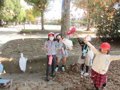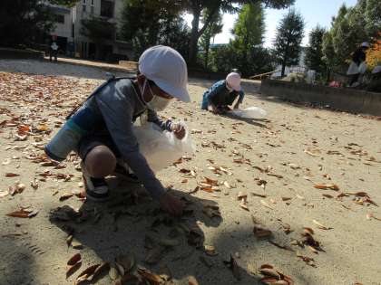 はやく集め終わった人は,集めた葉っぱで遊びました。