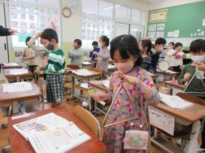 タンブリン・カスタネット・すず・トライアングルを使っています。