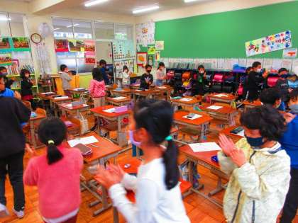 たくさん聞いて、体を動かせて表現しようと最後はみんなで行進して学習を深めました。