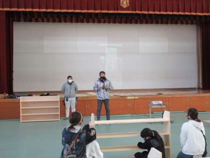 今回は、校舎リニューアルに伴い、教室廊下に設置する棚の制作を行いました。