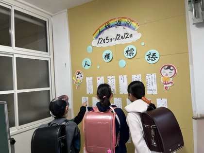 作成した標語は学年の掲示板や南校舎の入口に掲示しています。