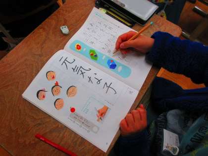 まずは、教科書をなぞったり字の大きさを確認しました。