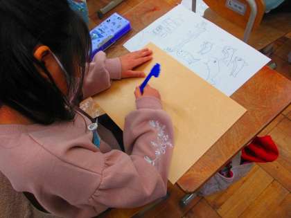 スチレンボードの版画に挑戦しています。先日、行った水族館の生き物(水で暮らす生物)の版画です。図鑑やタブレットを使って、自分だけの水槽を下書きしました。