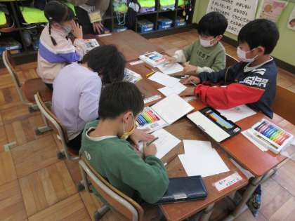 グループで取り組みたいお店を決め,商品づくりをしている様子です。