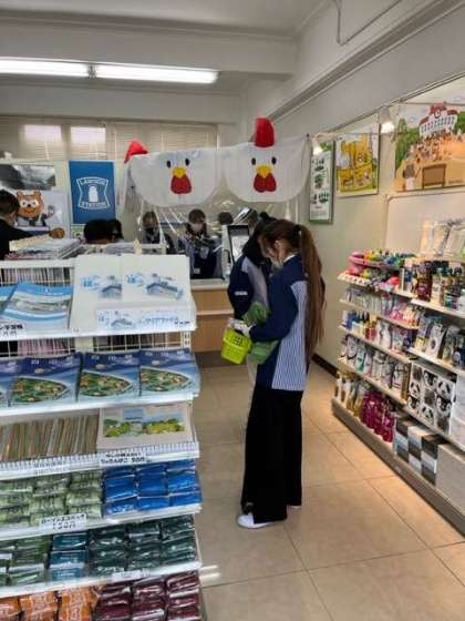 ローソンでは商品の陳列を通して売り方や接客について学んでいます。