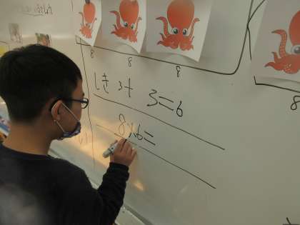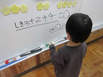 3つの足し算や四則計算を混ぜた計算をしました。具体物を操作しながら,やり方を考えて計算することができました。