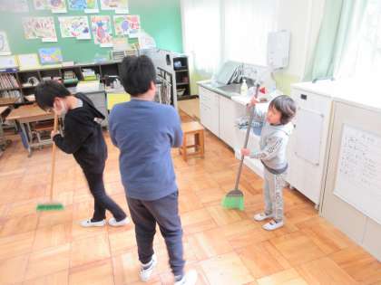 掃き掃除,床雑巾,うえ雑巾に分かれて,頑張っています。お手伝いに来てくれる5年生にも自ら声をかけて机を運ぶ子も出てきました。
