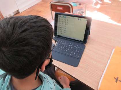 タブレットを使って,掛け算の計算をしました。