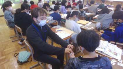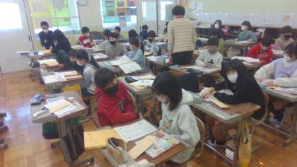 外国語の学習で「What would you like?」というUnitを学習しています。今日は、ペアで、お店屋さんとお客さんになってカードの商品のお買い物をしました。「How much?」や「Here you are.」とやり取りする姿はとても生き生きしていました。将来、みんなが外国に行ったときには、今日の学習を思い出して買い物をしてほしいと思います。