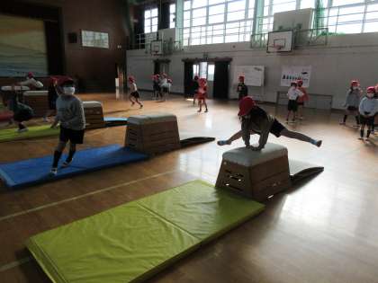 体育では引き続き跳び箱に挑戦しています。