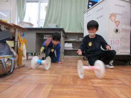 来週は,手作りおもちゃを使って広いところへコロコロ転がしに行きます。