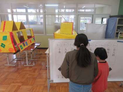 明日はいよいよ京都駅に行きます。乗り換えて行くので,乗り換えの学習をしました。切符の買い方は何度も取り組んでいるので,だんだんできるようになってきました。