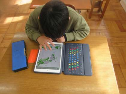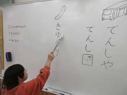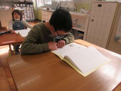 都道府県の位置の学習をしたり,拗音の学習をしたりそれぞれですが,最初の10分は個別学習をしています。そのあとは,全体での学習。みんなで「ずうっと,ずっと,だいすきだよ」を読みました。