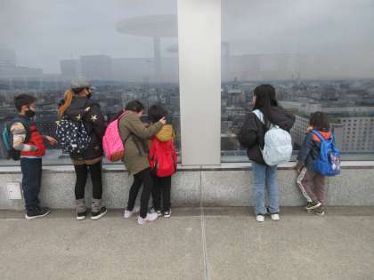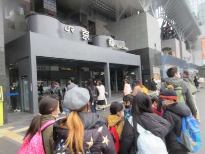 乗り換えもスムーズにすることができ,京都駅に到着。京都タワーを見たり,電車を見たりして楽しみました。サンダーバードを見て,うれしそうにする子もいました。