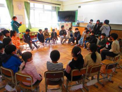15日(水)中間休みに最後のたてわり遊びがありました。もうすぐ、6年生が卒業するので6年生から在校生へのメッセージを伝える時間もありました。