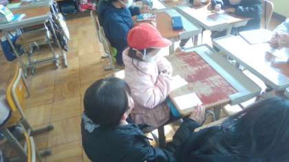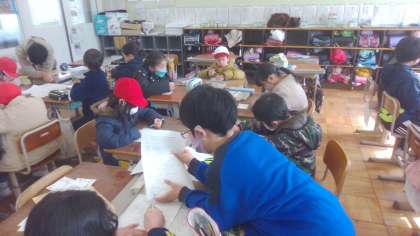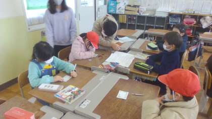 今日は中間休みにたてわり遊びをした後、6年生を除いたたてわり会議がありました。というのも、6年生はもうすぐ卒業ということで「1年間ありがとうを伝えるメッセージカード」をたてわりで作りました。その際、5年生が初めて下級生の前で司会進行を行いました。初めはその責任感で緊張している様子でしたが、メッセージカードを一緒に作っていくことを通して、高学年としての自覚が芽生えてきたようで、優しく書き方などを教えていました。