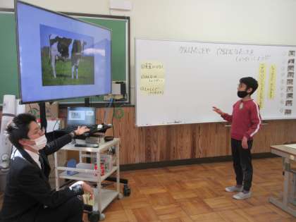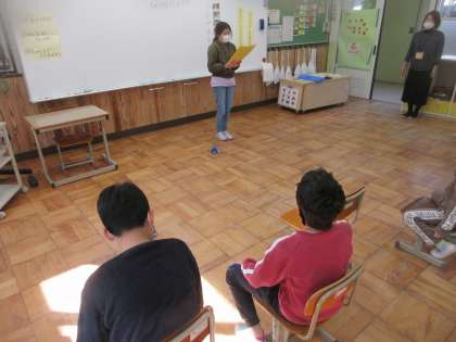 1年間でできるようになったことを発表しました。英語で色や動物を言ったり,漢字を書いたり,タブレットでQRコードを読み込んだり…。みんなそれぞれ堂々と発表することができました。