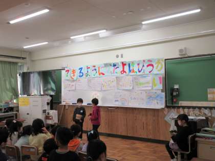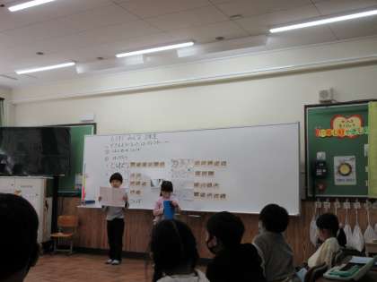 1年生は、小学校に入学して1年間、その中で成長したことやできるようになったことを発表しました。