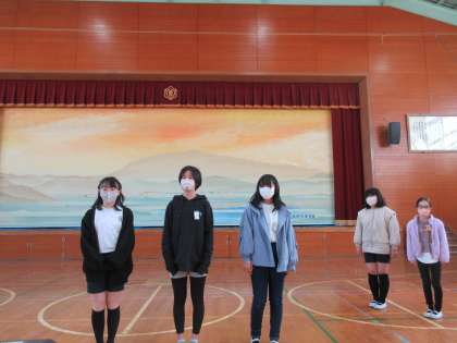 校長先生からは、先日、校長先生が走った京都マラソンの話から、あきらめずに一歩一歩進んでいくことがゴールにつながっていくので、学年のゴールに向かって頑張っていきましょうという内容でした。