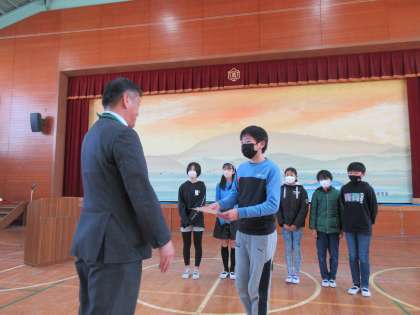 また、計画委員会からの連絡や、絵画や京きっずRUNでがんばった6年生の表彰を行いました。