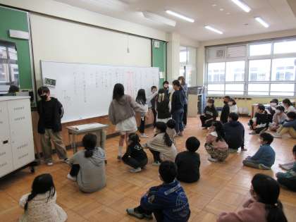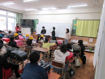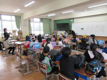 来年度に向けて集団登校の振り返りをしたり新しい集団登校の並び方を確認したりしました。