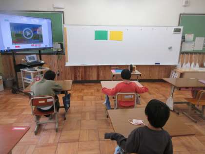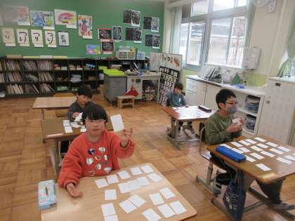 外国語で色と数字を言いました。画用紙の色を外国語で言いながら,同じ色を教室の中で探しました。また,数字を聞いて画用紙に書かれた数字カードを取りました。とても盛り上がり,「またやりたい。」と言っていました。