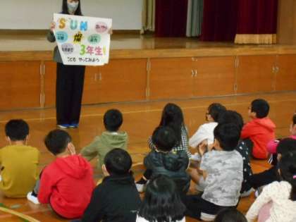 そのあと、3年生での学習や学年目標に込めた願いを先生から聞きました。最後は、もっと仲良くなるために「言うこと一緒 やること一緒ゲーム」をしました。