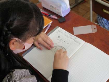 分度器を正しく使い、角度をはかっていきます。