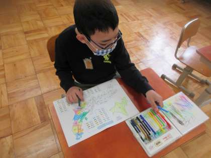 都道府県の色塗りをしました。「静岡県は○色」と言いながら,集中して取り組んでいました。