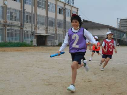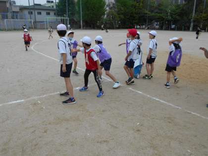 50m走のタイムからチームを分けてリレーの学習です。バトンゾーンやコーナートップのルールだけでなく、追い抜くときは外側など2年生の時よりも、覚えるルールがあります。そして、対戦相手との勝敗にも拘っていきます☆