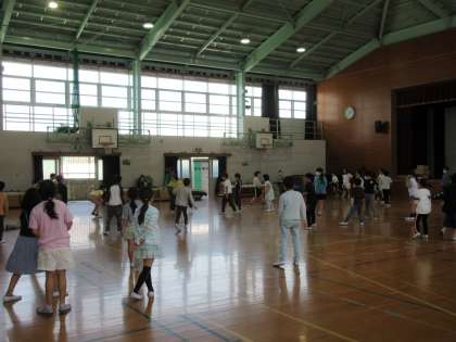 体育館では、4年生がクラス対抗のドッジボール大会をしていました。