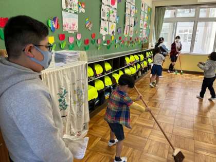 先週から、6年生が1年生の教室に行き、掃除をしたり、掃除の仕方を教えたりしています。6年生として使命感をもちながら、しっかりと掃除に向かう姿や、自分から1年生に声をかえる姿に頼もしさを感じます。道標として、力を発揮するチャンス!積極的に関係をつくりながら、1年生が掃除の仕方をマスターできるように頑張ってほしいと思います。