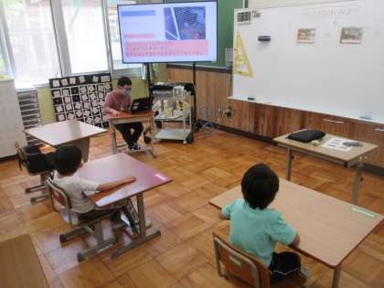 来週は1,2年生が学校探検をします。その事前学習として,学校探検をしました。わかば2のクラスで学校紹介のパワーポイントを作ったので,1年生に紹介した後,学校を案内しました。「こっちだよ。」と上級生から声をかけられながら,1年生は探検することができました。