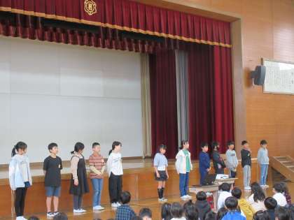 朝会の最後には、計画委員の5、6年生から自己紹介がありました。
