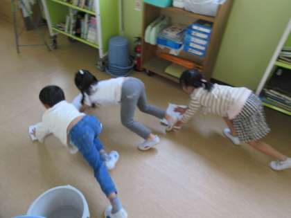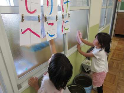6年生のお兄さん・お姉さんにやり方を教わりながら、自分たちで教室をきれいにしています。