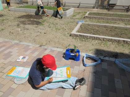 植えた苗はどのような葉っぱかな、葉っぱはどのような形かな丁寧に観察しました。