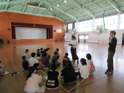 昼休み、集会委員会の5,6年生が体育館に集まり打ち合わせをしていました。