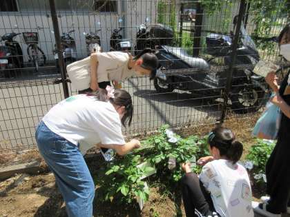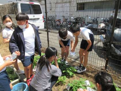 休み時間、体育横の畑をのぞいてみると、6年生が理科の実験をしていました。