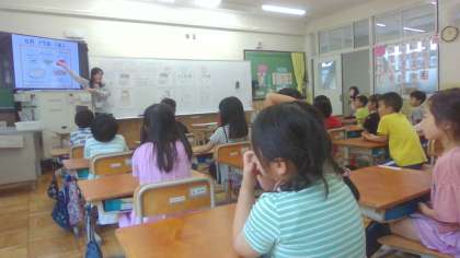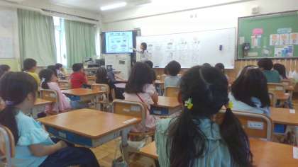 今日は栄養教諭の中西先生に来ていただいて、みんなで楽しく食べるために大切なことを勉強しました。食べ物のことということもあって、みんな興味津々にお話を聞いて、たくさん発表をしていました。みんなで楽しく食べるための「4つの大切なこと」をしっかりとわかったようで、これからの給食の時間がさらにいい時間になりそうです。