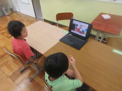 集中して,それぞれの課題に取り組んでいました。1年生は,「きんぎょがにげた」をタブレットで聞いて,金魚を見つけていました。