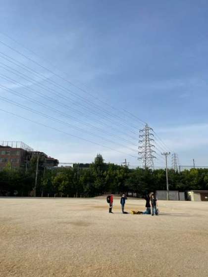 子どもたちも少しずつ登校してきています。出発式は7時15分からです。